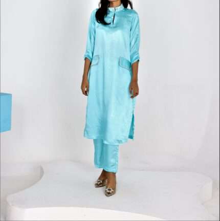 Embrace subtle sophistication with the Delphinium Pastel Blue Set, a graceful 2-piece ensemble that beautifully merges elegance with contemporary charm. Crafted from soft, premium fabric, this outfit features a soothing pastel blue hue and delicate collar embellishments, adding a refined sparkle to its minimalist design.