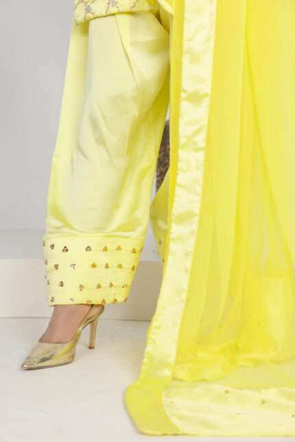 The vibrant lime hue paired with delicate zari detailing creates a fresh, festive aura—ideal for daytime celebrations, mehndi events, or elegant evening gatherings. Every stitch reflects fine craftsmanship, ensuring both comfort and style with a flattering silhouette that moves effortlessly from casual chic to festive finesse.